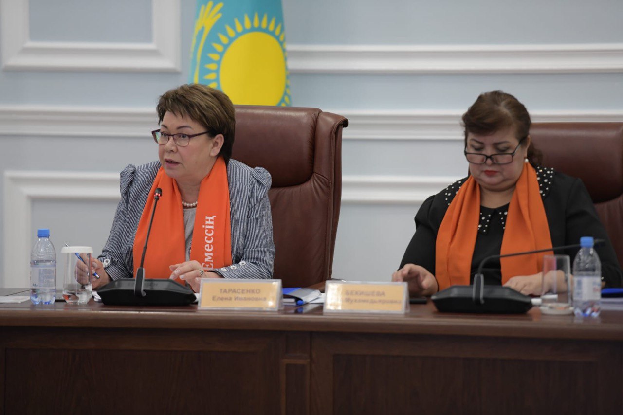 Модераторами встречи выступили заместитель председателя Национальной комиссии Елена Тарасенко и национальный гендерный эксперт, директор общественного фонда «Центр семейного успеха» Роза Бекишева.