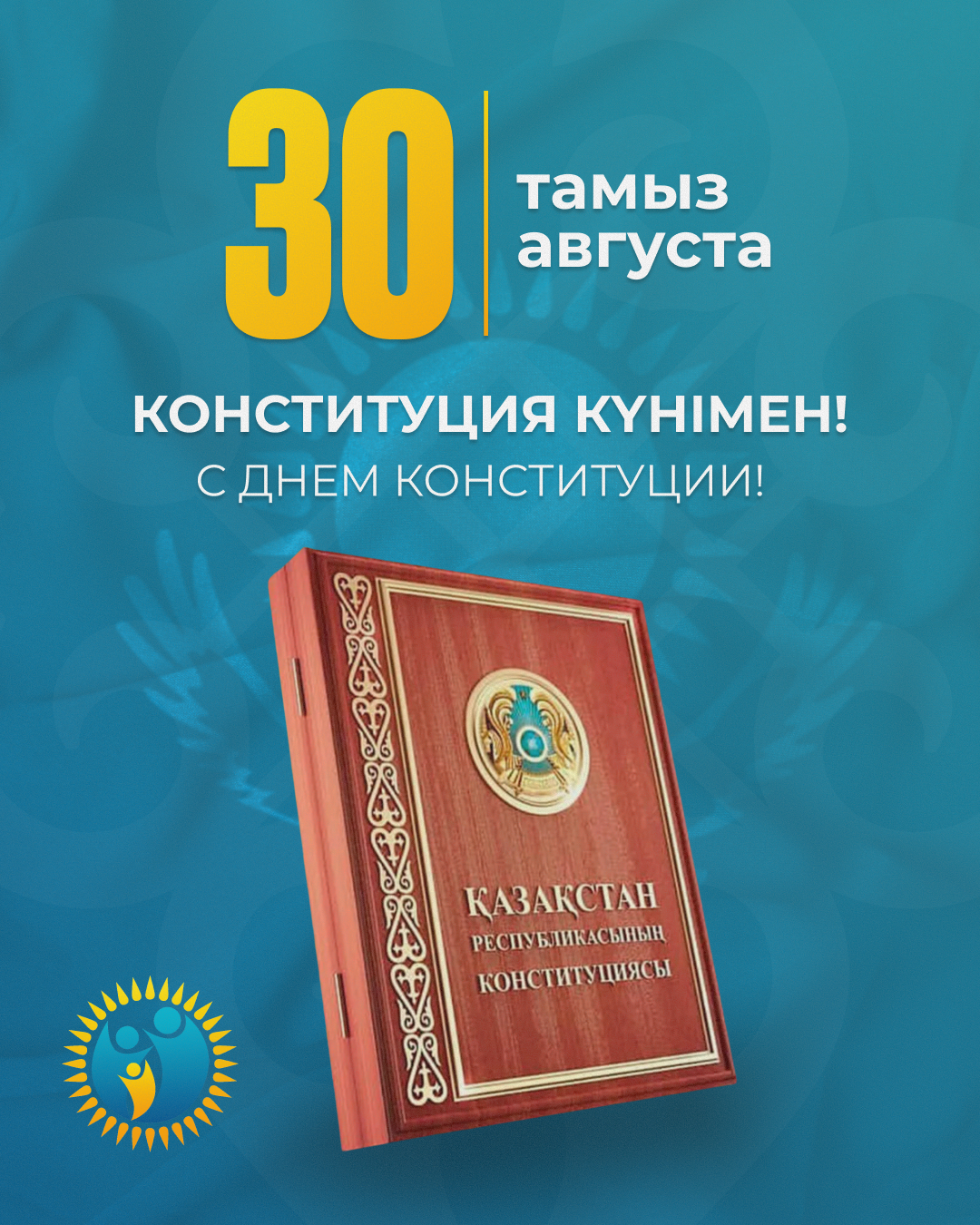 Қазақстан Республикасы Президентінің жанындағы Әйелдер істері және отбасылық-демографиялық саясат жөніндегі Ұлттық комиссия барша қазақстандықтарды Конституция күнімен және Ата Заңымыздың қабылданғанына 30 жыл толуымен құттықтайды!